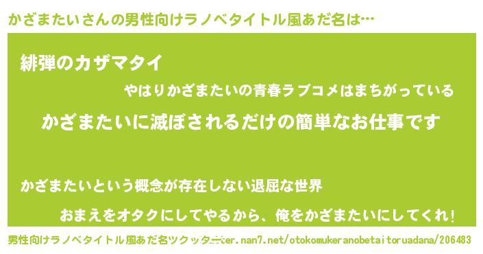 | ヒーロー風カッコイイあだ名 | 『慈愛の使者かざまたい』 |