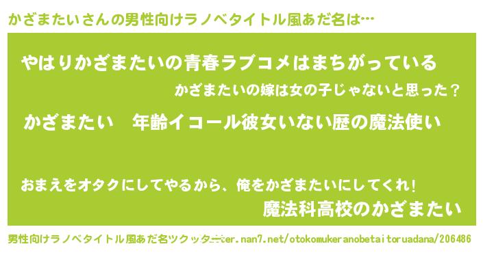 | 女子向けラノベタイトル風あだ名 | 『かざまたいの玉の輿計画!』 |