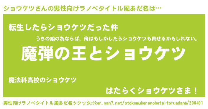| 意味不明あだ名 | 『住所不定無職ショウケツ(89歳)』 |
