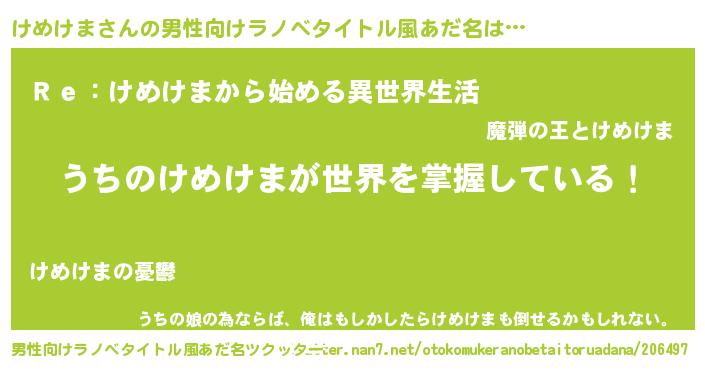 | ヒーロー風カッコイイあだ名 | 『究極戦士ケメケマ』『仮面ケメダー』 |