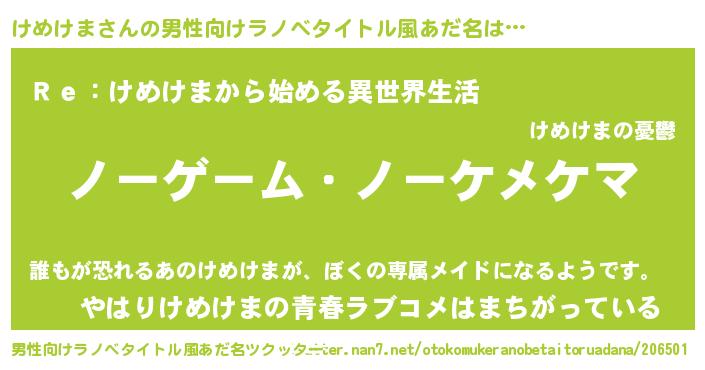 | ヒーロー風カッコイイあだ名 | 『慈愛の使者けめけま』『ネオケメケマ』 |
