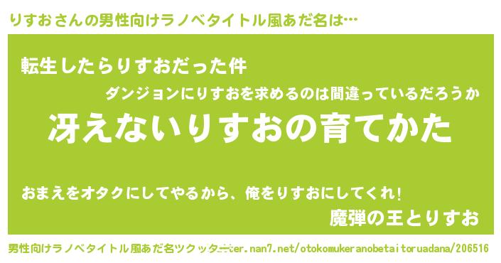 | ヘコむあだ名 | 『りすっちょ』『りすお(小並感)』 |