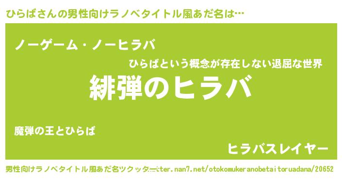 | ヘコむあだ名 | 『ひらば(笑)』『レバニラ』 |