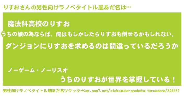 | ヒーロー風カッコイイあだ名 | 『魔戒騎士リス』『超時空戦士リスオ』 |