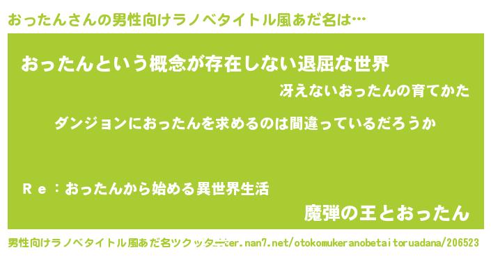 | 女子向けラノベタイトル風あだ名 | 『おったんは平凡を望む』『闇のおったん』 |