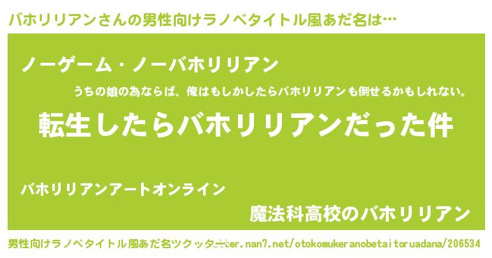 | 女子向けラノベタイトル風あだ名 | 『バホリリアンの玉の輿計画!』 |