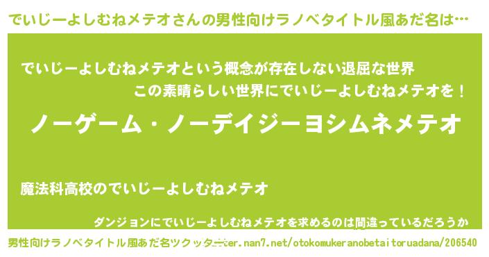 | 女子向けラノベタイトル風あだ名 | 『死神でいじーよしむねメテオの再婚』 |