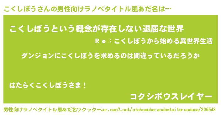 | 胡散臭い通販商品みたいなあだ名 | 『信頼と実績のネックレス…その名も「こくしぼう」』 |