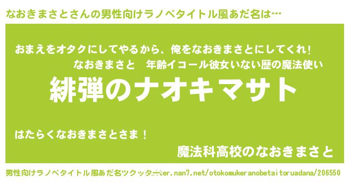 | 胡散臭い通販商品みたいなあだ名 | 『100人中100人が認めたマグネット磁石…その名も「なおきまさと」』 |