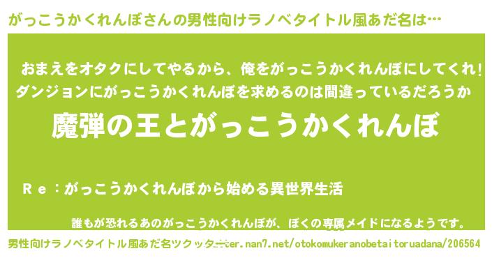 | ヒーロー風カッコイイあだ名 | 『仮面ガッダー』『魔戒騎士ガッ』 |