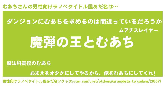| 女子向けラノベタイトル風あだ名 | 『乙女ゲームの破滅フラグしかない悪役むあちに転生してしまった…』 |