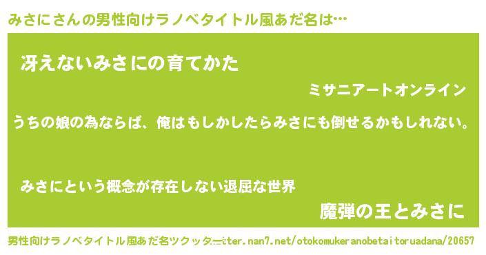 | 女子向けラノベタイトル風あだ名 | 『みさに伯爵の花嫁』 |
