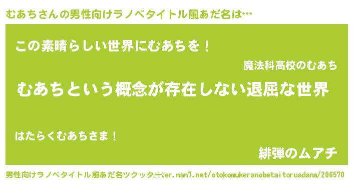 | 胡散臭い通販商品みたいなあだ名 | 『来世でも幸せになれる健康食品…その名も「むあち」』 |