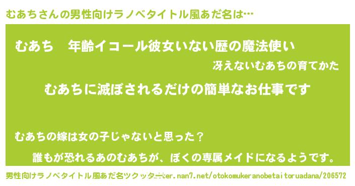 | 胡散臭い通販商品みたいなあだ名 | 『前代未聞の健康食品…その名も「むあち」』 |