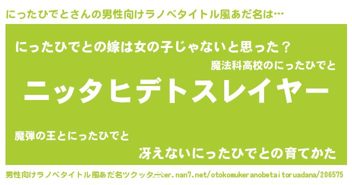 | 胡散臭い通販商品みたいなあだ名 | 『信頼と実績のサプリメント…その名も「にったひでと」』 |