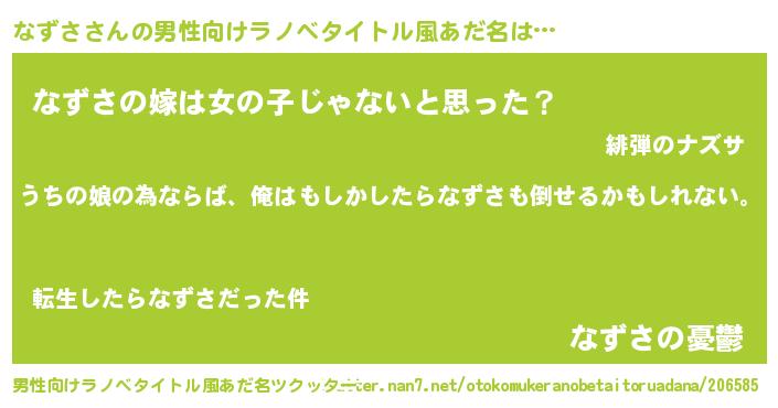 | 女子向けラノベタイトル風あだ名 | 『なずさの婚約者』『なずさ様がみてる』 |