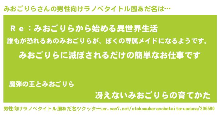 | 意味不明あだ名 | 『自称みおごりら』『永久保存みおごりら』 |