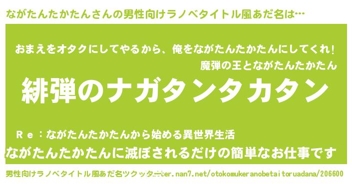 女子向けラノベタイトル風あだ名 | 『シンデレラながたんたかたん家の靴箱館』 |
