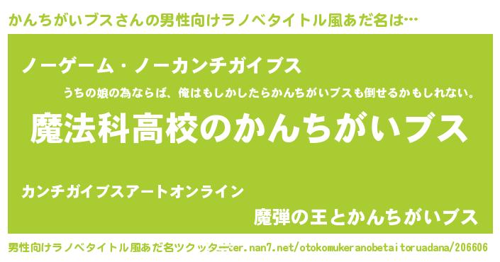 | 女子向けラノベタイトル風あだ名 | 『かんちがいブスアンティーク』 |
