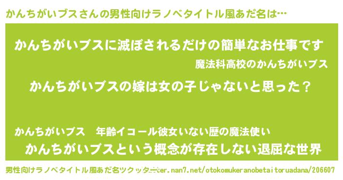 | 女子向けラノベタイトル風あだ名 | 『かんちがいブス様がみてる』 |