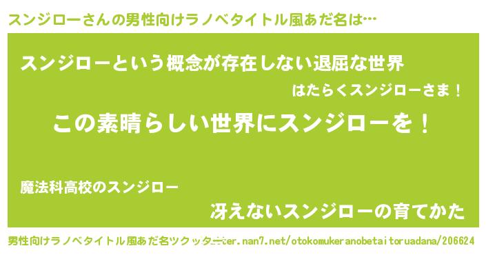 | 女子向けラノベタイトル風あだ名 | 『悪役スンジローに転生したようですが、知った事ではありません』 |
