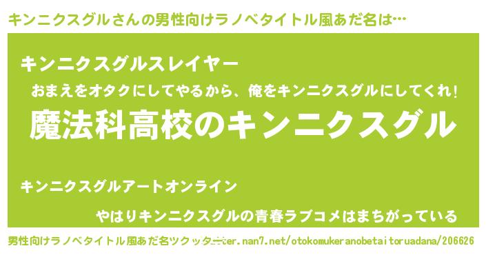 | 意味不明あだ名 | 『自称キンニクスグル』 |