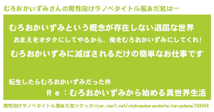 | 胡散臭い通販商品みたいなあだ名 | 『来世でも幸せになれる招き猫…その名も「むろおかいずみ」』 |