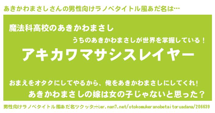 | 肩書あだ名 | 『あきかわまさし大尉』 |