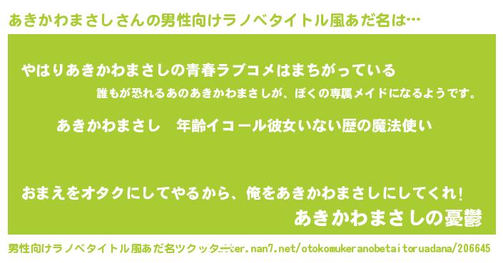 | 胡散臭い通販商品みたいなあだ名 | 『運命の人と巡り会える高級そうな絵画…その名も「あきかわまさし」』 |