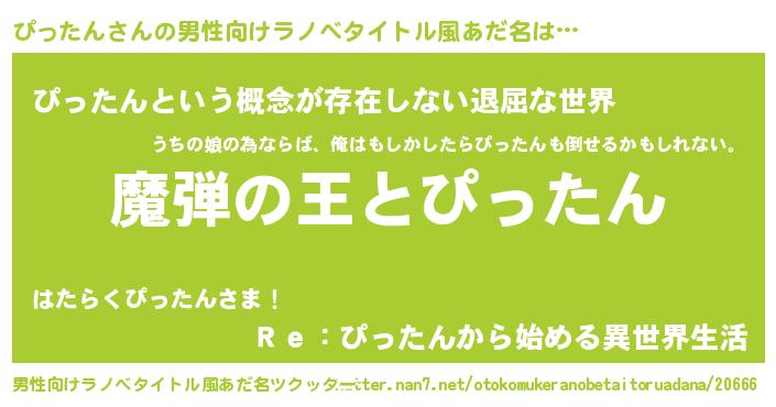| 女子向けラノベタイトル風あだ名 | 『ぴったんが死なない童話 林檎のぴったんの診療簿』 |