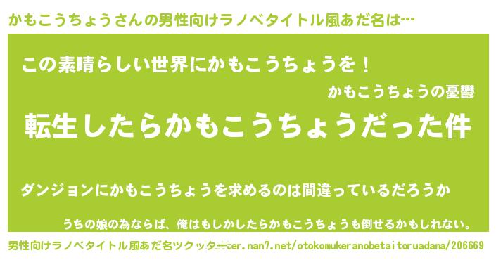 | 肩書あだ名 | 『かもこうちょう上級大将』 |