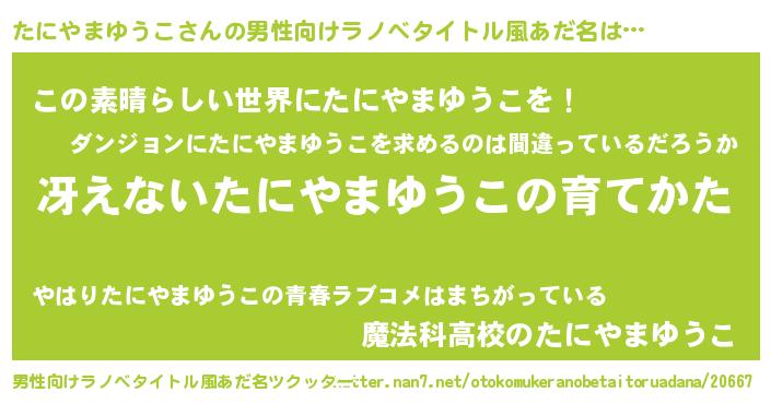 | 女子向けラノベタイトル風あだ名 | 『男装たにやまゆうこの憂鬱な任務』 |
