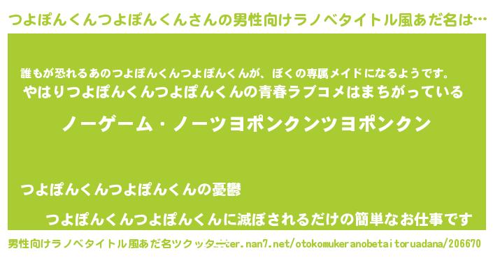 | 伝説のあだ名 | 『救世主となる占い師つよぽんくんつよぽんくん』 |