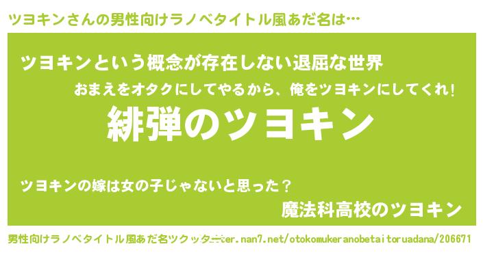 | 意味不明あだ名 | 『永久保存ツヨキン』『自称ツヨキン』 |