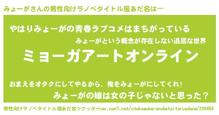 | ファンタジー風あだ名 | 『ミョフェル』『エターナルミョーガー』 |