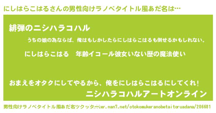 | 胡散臭い通販商品みたいなあだ名 | 『億万長者になれる水晶球…その名も「にしはらこはる」』 |