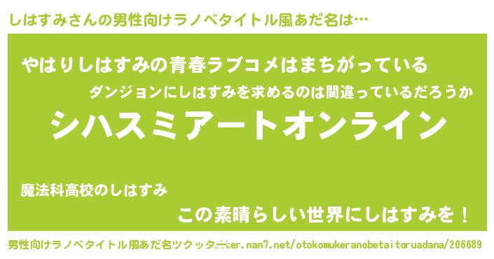 | 女子向けラノベタイトル風あだ名 | 『しはすみ姫と円卓の騎士』 |