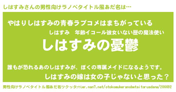 | 胡散臭い通販商品みたいなあだ名 | 『必ず成功する水晶球…その名も「しはすみ」』 |