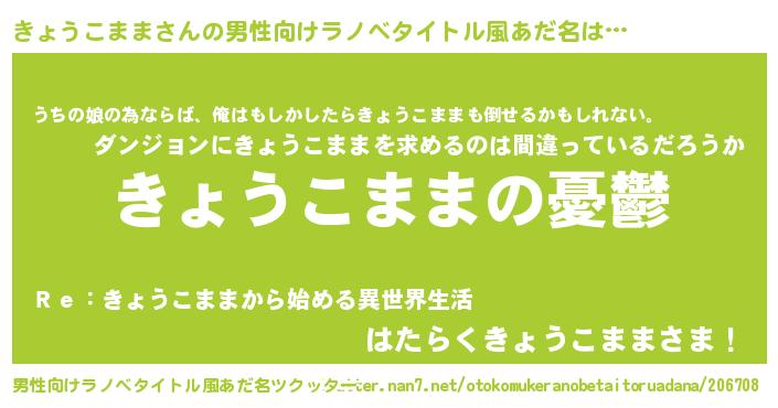 | 胡散臭い通販商品みたいなあだ名 | 『モテモテ間違いなし水晶球…その名も「きょうこまま」』 |