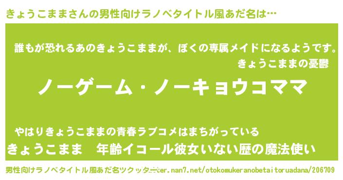 | 女子向けラノベタイトル風あだ名 | 『死神きょうこままの再婚』 |