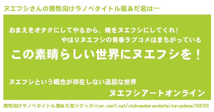 意味不明あだ名 | 『住所不定無職ヌエフシ(9歳)』 |