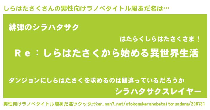 | 女子向けラノベタイトル風あだ名 | 『闇のしらはたさく』 |