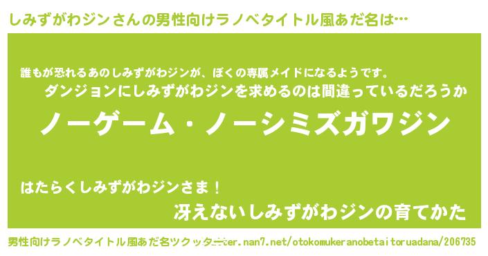 | 女子向けラノベタイトル風あだ名 | 『しみずがわジン恋絵巻』 |