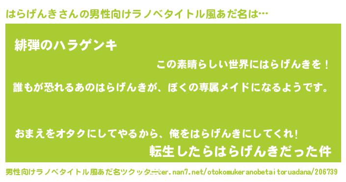 | 伝説のあだ名 | 『古より伝わる吟遊詩人はらげんき』 |