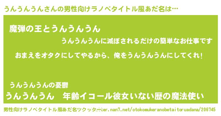 | 女子向けラノベタイトル風あだ名 | 『うんうんうん夫妻のなれそめ』 |