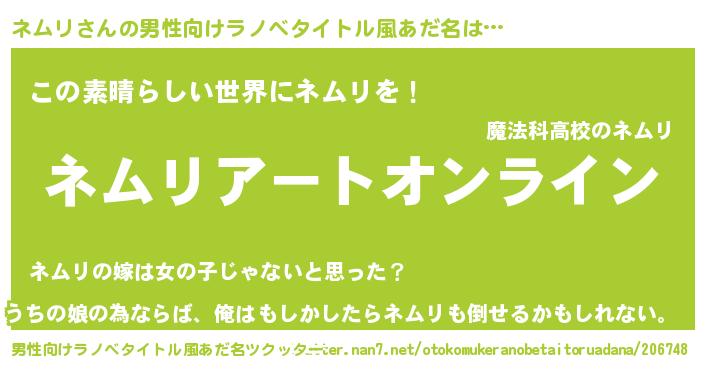 | ファンタジー風あだ名 | 『ネムフェル』『ヴァルネムーナ』 |