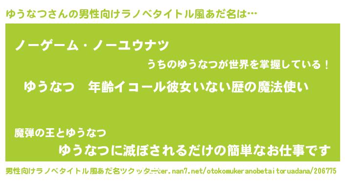 | 女子向けラノベタイトル風あだ名 | 『ゆうなつの玉の輿計画!』 |