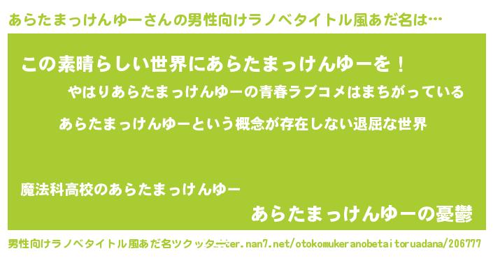 | 意味不明あだ名 | 『永久保存あらたまっけんゆー』 |