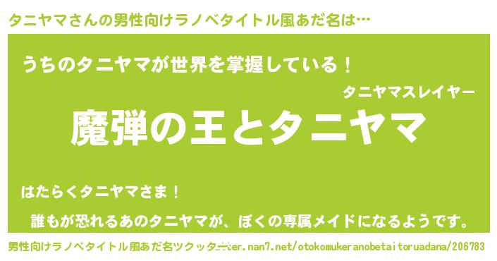 | ヒーロー風カッコイイあだ名 | 『仮面タニダー』『ネオタニヤマ』 |