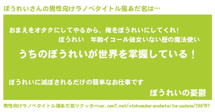| 女子向けラノベタイトル風あだ名 | 『男装ぼうれいの憂鬱な任務』 |